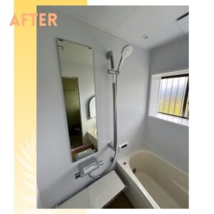 浴室リフォーム TOTO「サザナ」 2026/03/17 掃除がしやすく 冬でも温かいお風呂 和歌山県橋本市 S様邸 システムバスは人気の高い「TOTOサザナ」に交換しました。 寒かったタイル張りの床も、畳のようにやわらかくひんやりしない「ほっカラリ床」で快適に。 乾きやすく汚れが落ちやすいので、日々のお掃除を楽にしてくれます。 さらに、お湯が冷めにくい「魔法びん浴槽」でくつろぎのバスタイムを楽しむことができます。